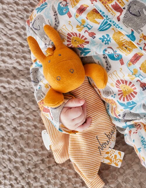 Coffret Doudou Lapin Plat Gris Jaune Rouge Mes Premiers Chaussons BABY NAT’