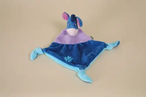 Ce doudou plat Bourriquet de Disney Nicotoy allie tendresse et réconfort avec ses couleurs douces bleu et mauve. Facile à attraper par les petites mains, il accompagne bébé dans ses moments de câlins, de jeu ou de repos. Un compagnon tout en douceur pour les premiers instants de vie, à offrir ou à garder précieusement.