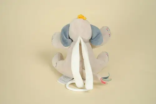 Doudou Eléphant Musical Beige et Bleu Wapi Bao NOUKIE’S 16 cm