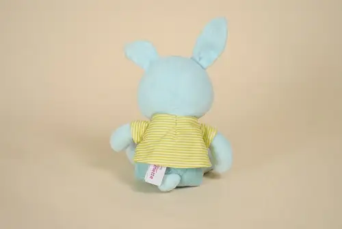 Doudou Lapin Bleu Pull Rayé Vert POMMETTE