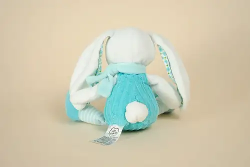 Doudou Lapin Bleu Turquoise MOTS D’ENFANTS 27cm