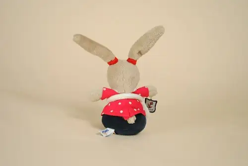 Doudou Lapin Marron Rouge Bleu Sac Grelot Ocean Club BABYSUN 19 cm