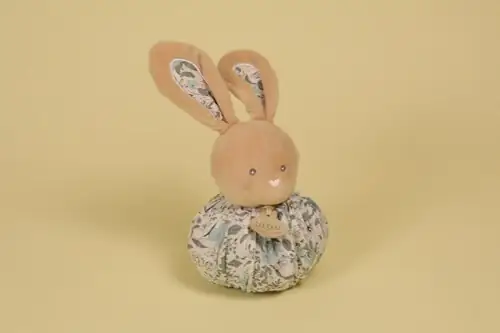 Doudou Lapin Plat Beige Bleu Boule 3 en 1 DOUDOU & COMPAGNIE