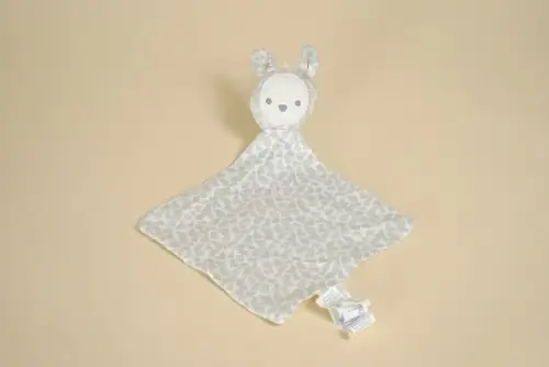 Doudou Lapin Plat Blanc Imprimé Ours Gris OBAIBI