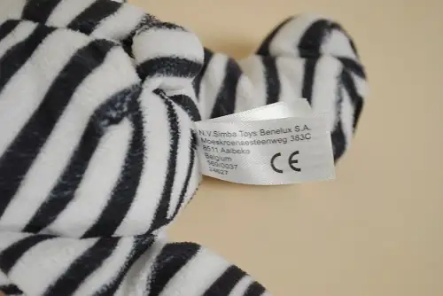 Doudou Lapin Zébré Rayure Blanc Noir SIMBA TOYS 26 cm