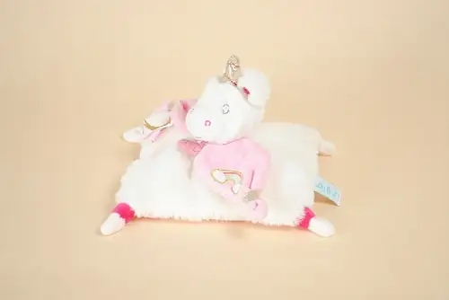 Doudou Licorne Plat Rose Blanc Poussière Etoile BABY NAT’