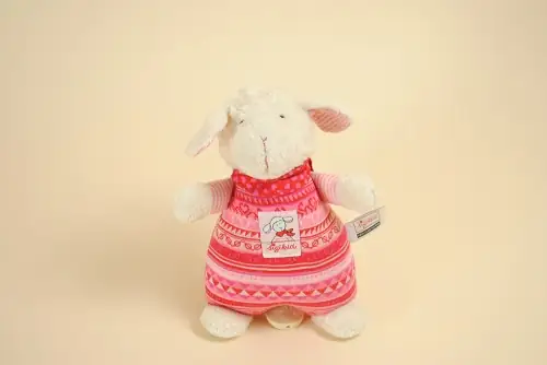 Doudou Mouton Musical Blanc Rose Bandana Coeur SIGIKID 22 cm