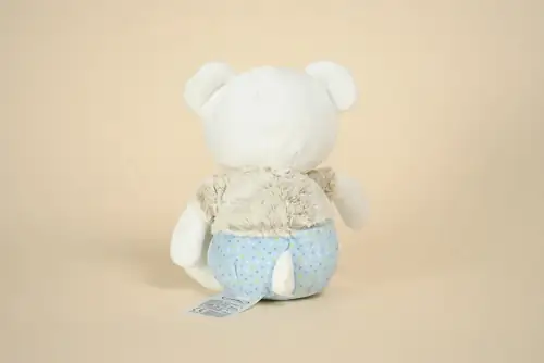Doudou Ours Bleu Blanc Marron Chiné Oiseau MOTS D’ENFANTS 24 cm
