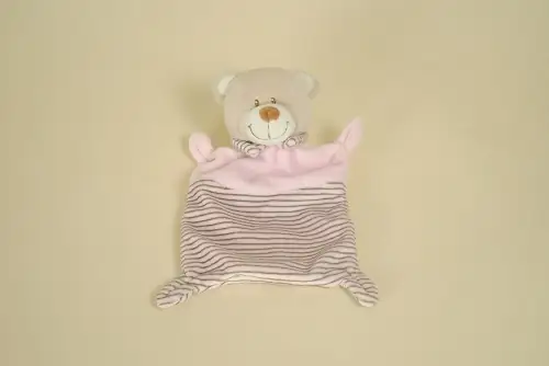 Doudou Ours Plat Rose et Rayé Occasion en Excellent Etat