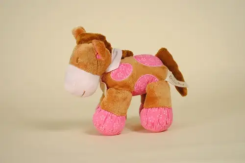 Doudou Poney Cheval Marron Rose Grelot BABY NAT’ 20 cm
