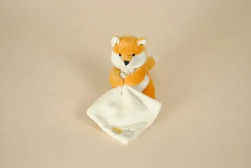 Doudou Renard Mouchoir Orange Blanc BABY NAT’