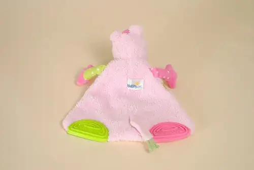 Doudou Vache Plat Rose Vert Dentition BABYSUN