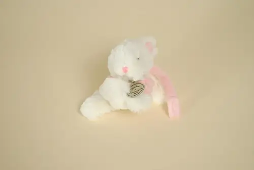 Mini Doudou Lapin Rose Attache Tétine. Collection « Bonbon » représente des lapins tout doux à poils longs. Ces lapins peuvent être plat, avec mouchoir, pantin, attache-tétine…. et ils ont des couleurs différentes: bleu, rose, taupe….. Belle collection! Ils sont de toutes les tailles et surtout à câliner.