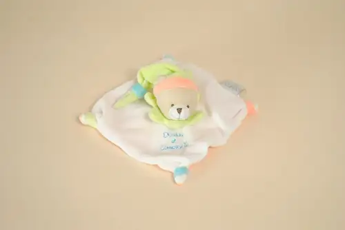 Mini Doudou Ours Plat Acidulé Orange Vert DOUDOU & COMPAGNIE
