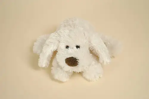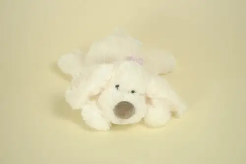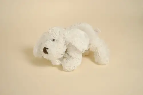 Peluche Chien Blanc Nez Marron Poil Long Yeux Billes HISTOIRE D’OURS 25 cm
