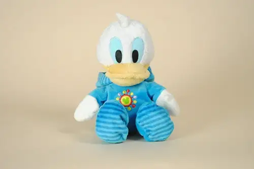Adoptez la tendre peluche Donald Disney Nicotoy 27 cm habillée d’une adorable combinaison bleue avec capuche. Toute douce et moelleuse, elle accompagnera les enfants dans leurs jeux et leurs câlins. Ce doudou de collection Disney est idéal pour partager des moments rassurants et faire un joli cadeau aux fans du célèbre canard.