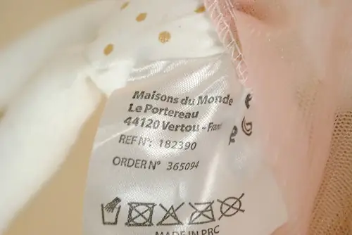 Peluche Lapin Blanc Fée Tutu Rose Aile Doré MAISON DU MONDE