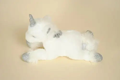 Laissez-vous emporter par la magie avec cette somptueuse Peluche Licorne Couchée de la marque HISTOIRE D’OURS ! Mesurant 35 cm de long, elle est idéale pour décorer une chambre ou pour des câlins XXL. Son corps est d’un Blanc immaculé, rehaussé de touches Argentées Pailletées sur la corne et les sabots apportant un éclat féérique. Sa position couchée la rend particulièrement réconfortante et facile à enlacer. Un cadeau enchanteur, synonyme de douceur et de rêve.