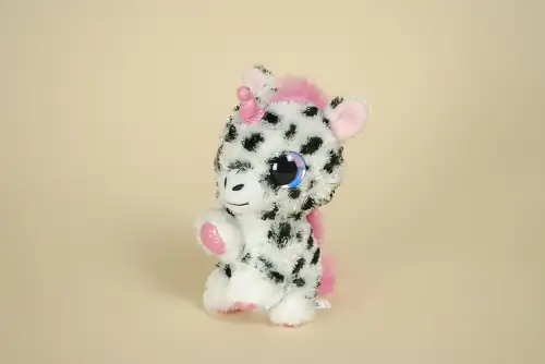 Peluche Licorne Blanc Noir Corne Rose Gros Yeux LUMO STARS 15 cm
