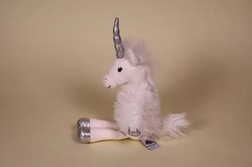 Peluche Licorne Divine Blanc et Argent avec ses yeux billes noirs en Excellent Etat