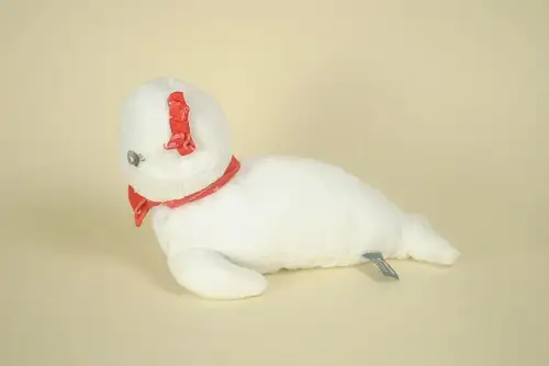 Peluche Otarie Phoque Blanc Nœud Echarpe Rouge ORCHESTRA 35 cm