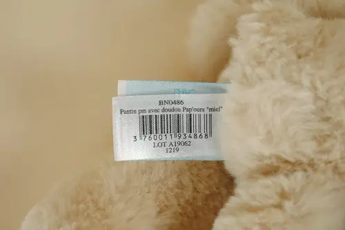 Adorable peluche ours beige Pap’ours Baby Nat’, ce compagnon tout doux tient un joli mouchoir blanc pour rassurer et apaiser bébé. Avec son pelage couleur miel et son style tendre, il offre un câlin réconfortant à chaque instant. Sa taille de 25 cm est parfaite pour les petites mains. Un ours plein de charme, idéal comme cadeau de naissance ou compagnon de sommeil.