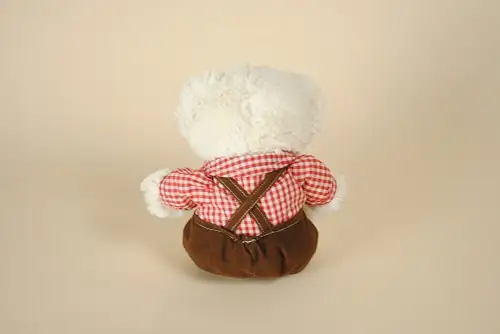 Peluche Ours Blanc Salopette Marron Chemise Carreaux Rouge BOB DER BAR