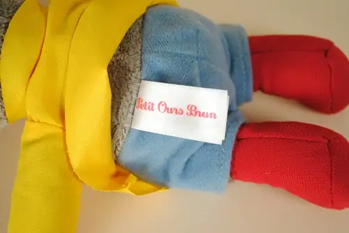 Peluche Petit Ours Brun Veste Jaune Botte Rouge JEMINI 18 cm